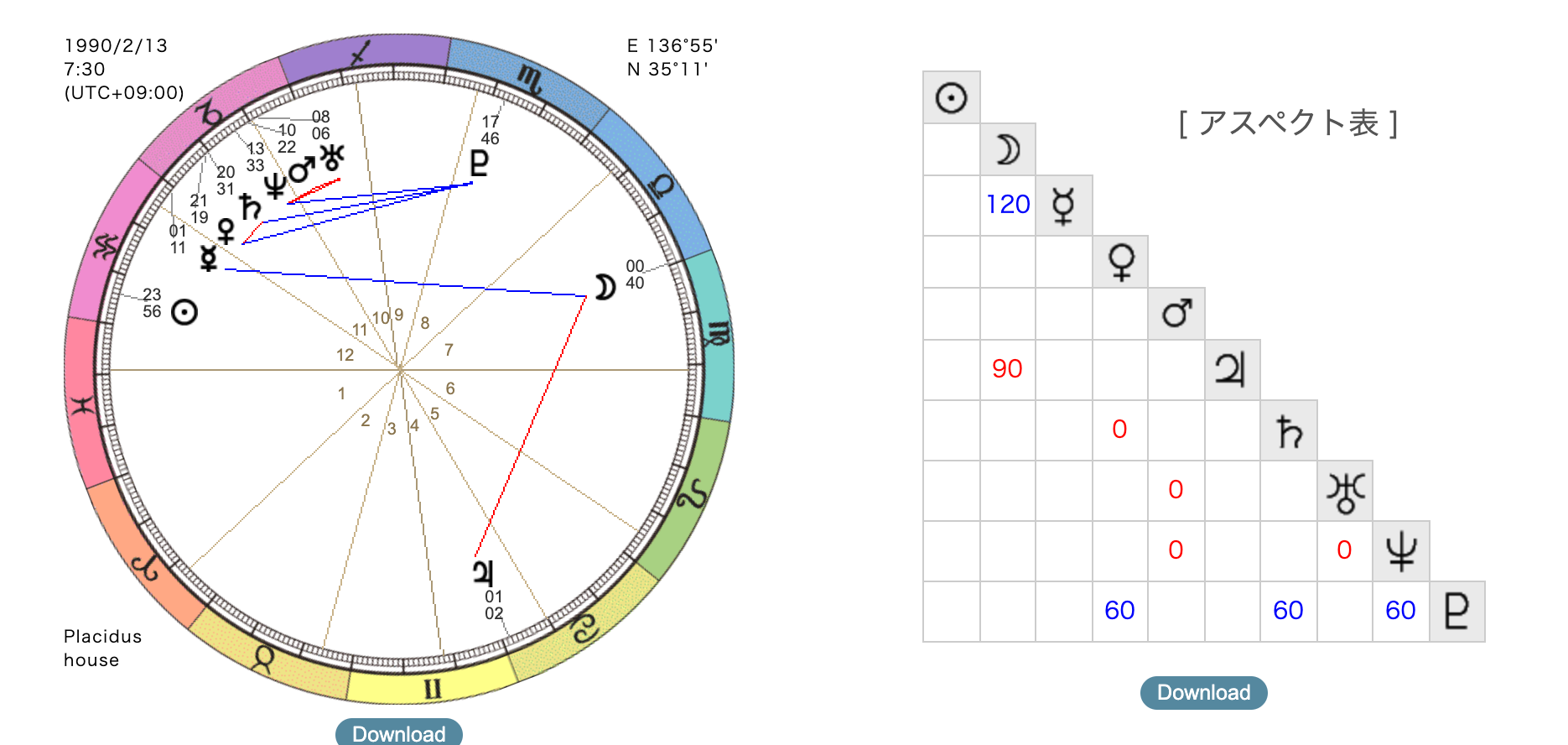 西洋占星術は生年月日と出生時刻、出生地を鑑定し、”サイン、ハウス、アスペクト”という要素を導き出し、分析します。