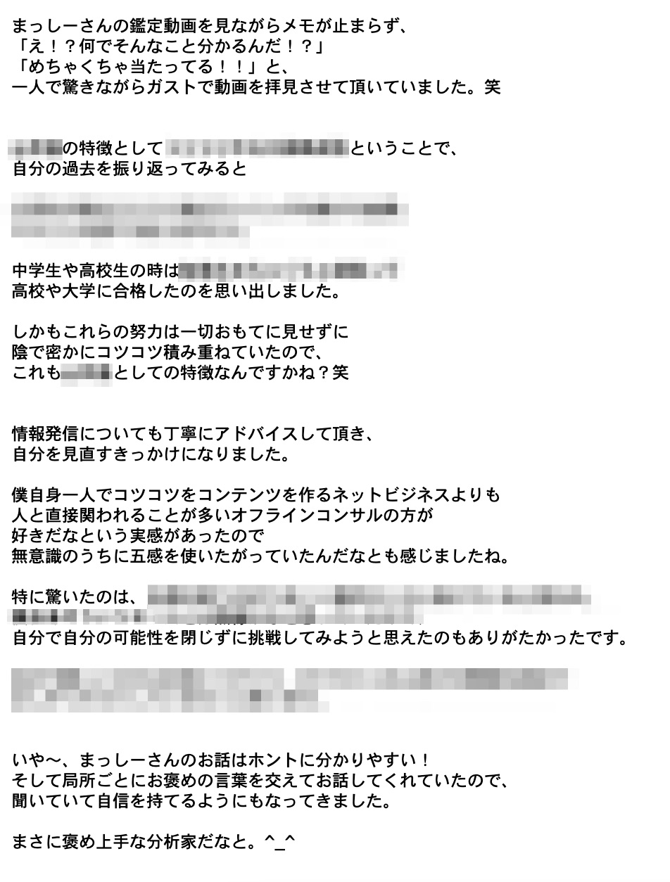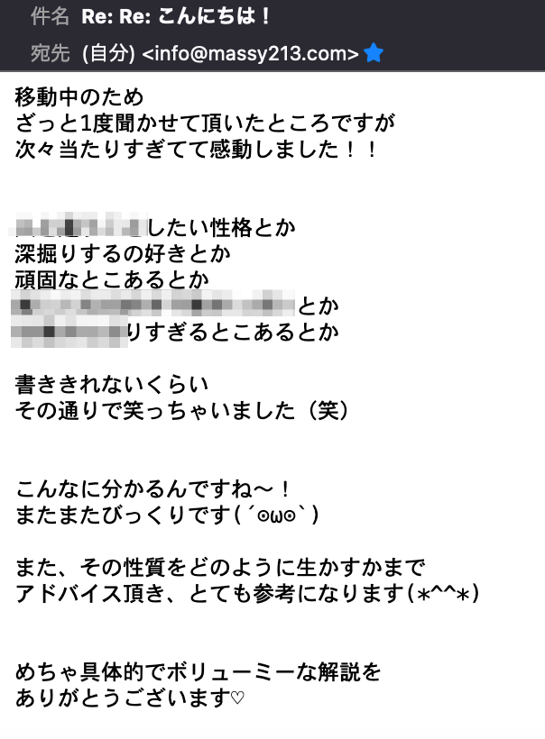 こちらは、私が実際に占星術(ホロスコープ)の鑑定を実施してきた中で頂いてきた感想の一部です。